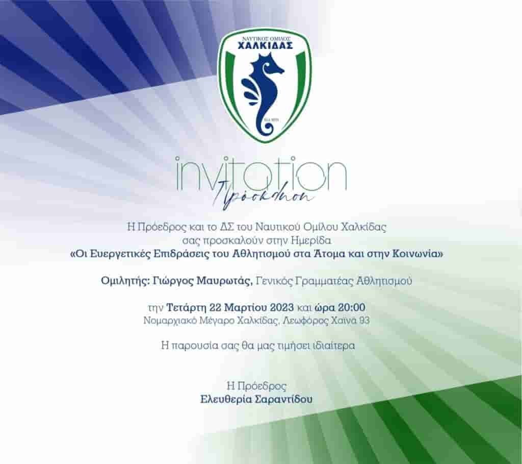 H Πρόεδρος και το ΔΣ του Ναυτικού Ομίλου Χαλκίδας σας προσκαλούν στην Ημερίδα