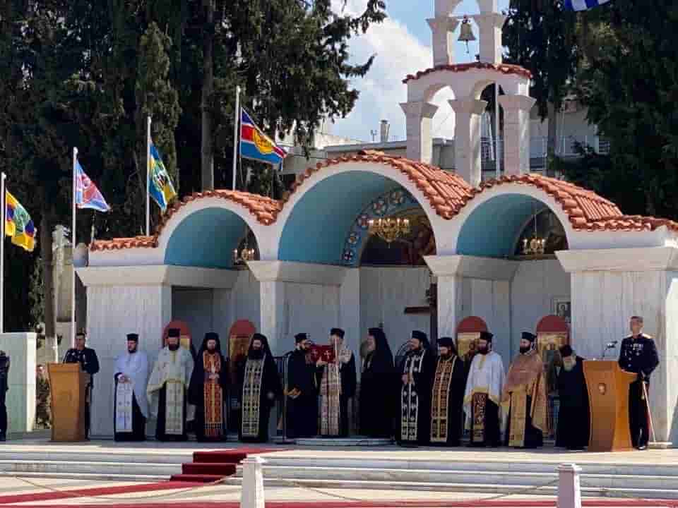 Λαμπρός και μεγαλοπρεπής εορτασμός του Αγίου Γεωργίου Μεγαλομάρτυρα, Προστάτη του Στρατού Ξηράς, πραγματοποιήθηκε σήμερα Κυριακή 23 Απριλίου 2023 στην Σχολή Πεζικού Χαλκίδας, παρουσία του Υφυπουργού Εθνικής Άμυνας και εκπροσώπου της κυβέρνησης κου. Νίκου Χαρδαλιά και πλήθους εκπροσώπων των πολεμικών δυνάμεων της χώρας εν ενεργεία και εν αποστρατεία, καθώς εκπρόσωποι φορέων και σχολικών τμημάτων.
