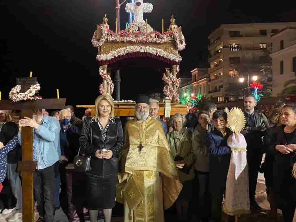 Με εκκλησιαστική μεγαλοπρέπεια και σε κλίμα κατάνυξης πραγματοποιήθηκε χθες το απόγευμα, Μ. Παρασκευή 14 Απριλίου 2023, η Ακολουθία του Επιταφίου στον Μητροπολιτικό Ι.Ν Αγίου Δημητρίου, χοροστατούντος του Σεβασμιωτάτου Μητροπολίτου Χαλκίδος κ. Χρυσοστόμου, στην οποία παρευρέθηκε η Δήμαρχος Χαλκιδέων Έλενα Βάκα.