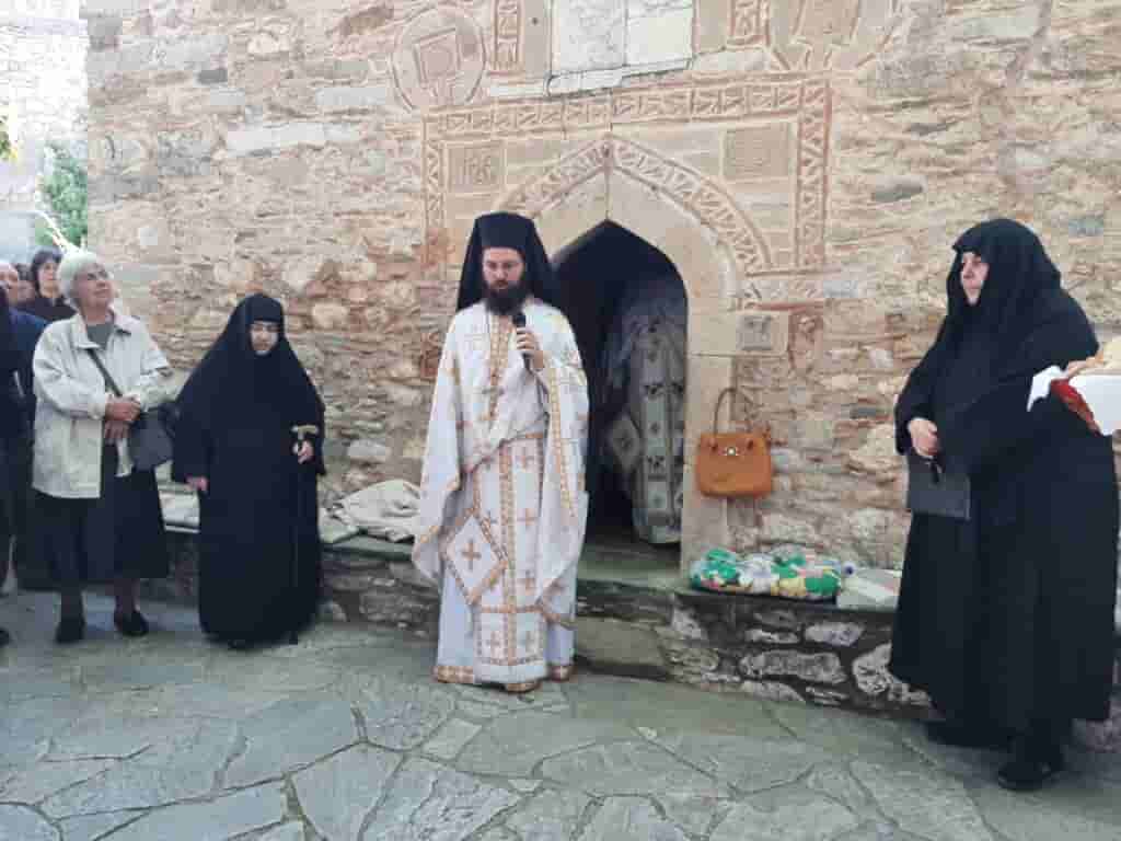 Επίσης το αναλόγιο διηκόνησαν ο Πρωτοψάλτης της Ιεράς Μονής κ. Χαράλαμπος Καρακατσάνης με τον Ιεροψάλτη Ιερού Ναού Αγίου Νικολάου Ερέτριας κ. Δημήτριο Πετρογιάννη μετά της φιλόξενης  παραχώρησης  της Ηγουμένης Μακαρίας Μοναχής και της συνοδείας της.