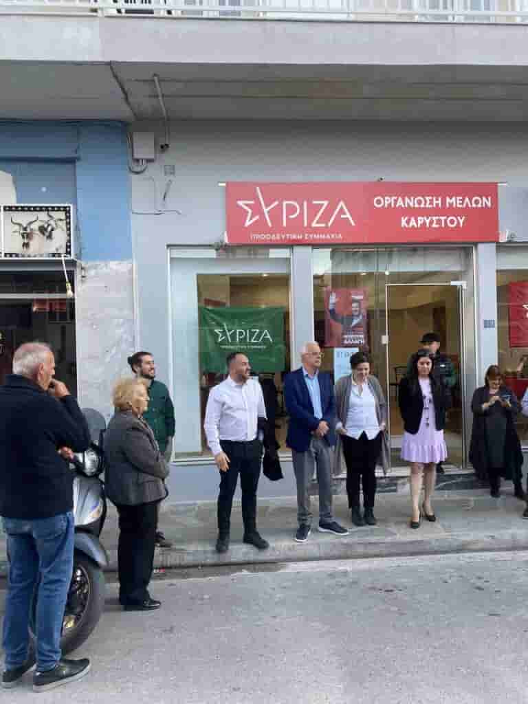 Το απόγευμα ο Μίλτος Χατζηγιαννάκης παραβρέθηκε στην Κάρυστο, όπου με τη συμμετοχή όλων των υποψηφίων βουλευτών του ΣΥΡΙΖΑ-ΠΣ αλλά και παρουσία πολλών πολιτών και φίλων, πραγματοποιήθηκαν τα εγκαίνια του εκλογικού κέντρου, μέσα σε κλίμα αισιοδοξίας για νίκη του ΣΥΡΙΖΑ στην Εύβοια και σε ολόκληρη την Ελλάδα στις εκλογές της 21ης Μαΐου.