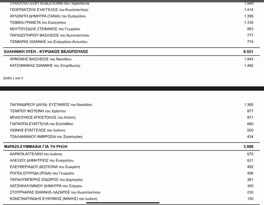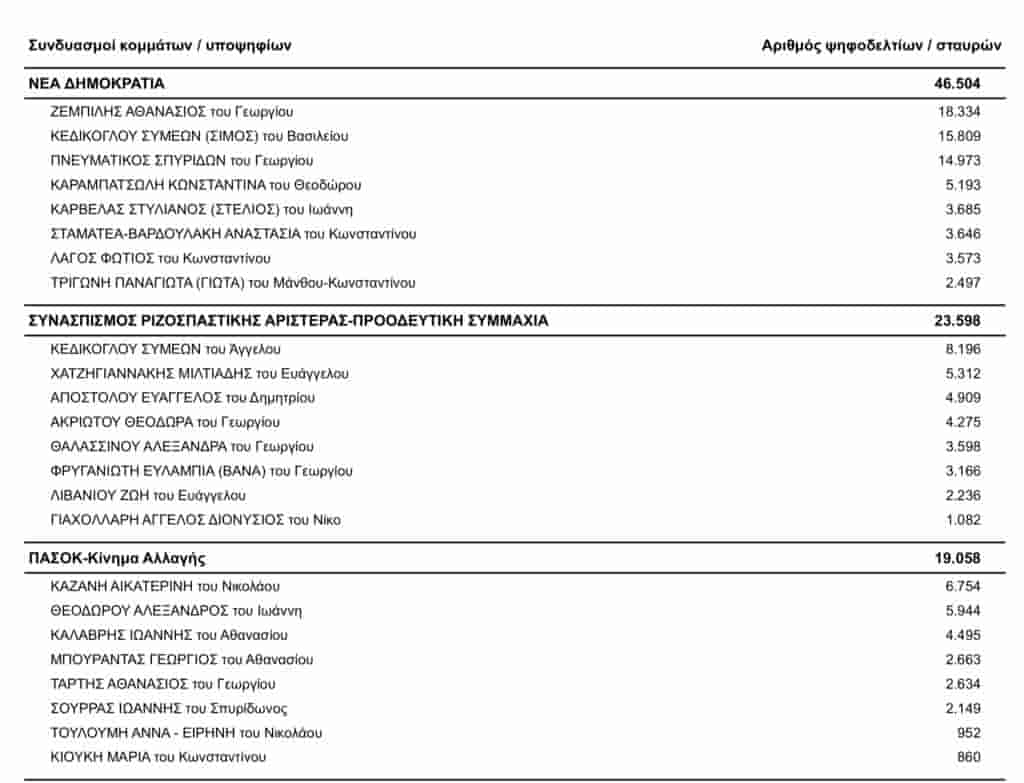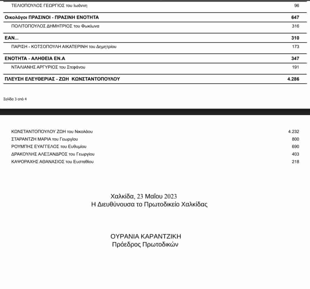 Ακολουθεί ο οριστικός πίνακας των τελικών συγκεντρωτικών αποτελεσμάτων της ΠΕ Εύβοιας όπως έχει αναρτηθεί από το Πρωτοδικείο Χαλκίδας και την Περιφέρεια Στερεάς Ελλάδας