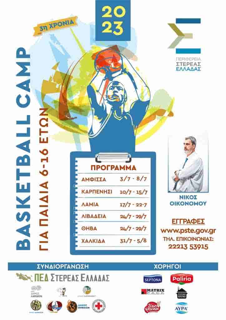 Η Περιφέρεια Στερεάς Ελλάδας διοργανώνει Basketball Camps σε όλες τις Περιφερειακές