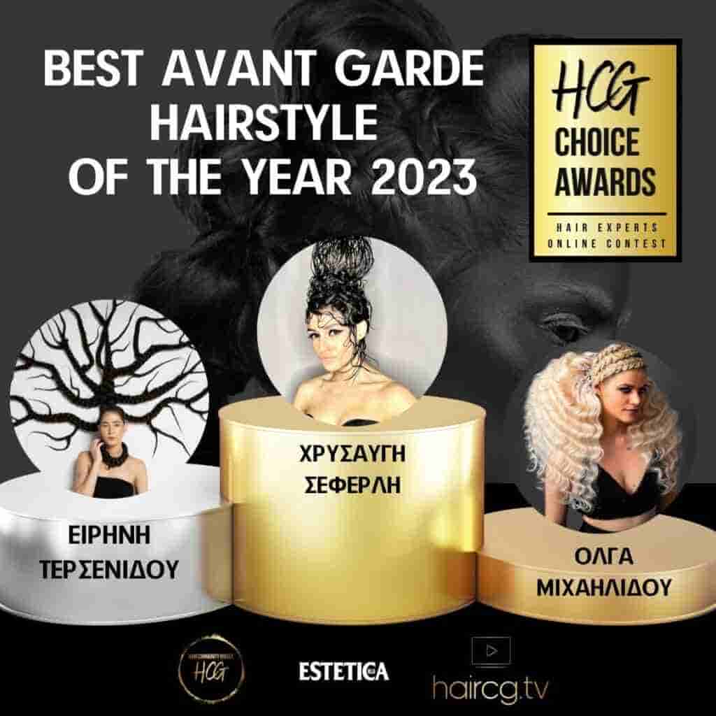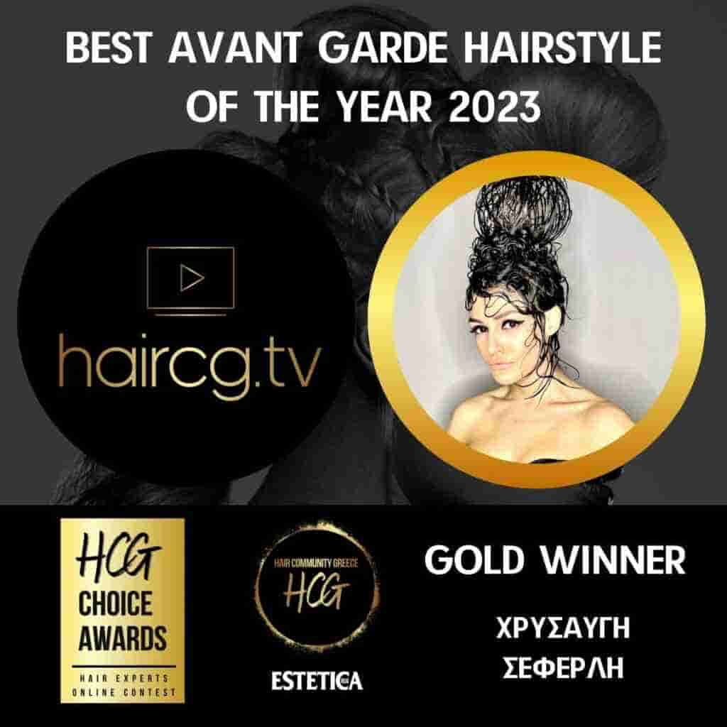Με ξεκάθαρο θηλυκό πνεύμα που πολλαπλασιάζει περίτεχνα τις ιδέες και το ταλέντο της κομμωτικής, υπηρετώντας με ιδιαίτερο ζήλο το αναπόσπαστο αυτό κομμάτι του ανθρώπινου πολιτισμού, η Χρύσα Σεφερλή κατάφερε να δημιουργήσει μια συγκλονιστική διαμόρφωση γυναικείων μαλλιών και να κατακτήσει την πρώτη θέση και το χρυσό έπαθλο, στην κατηγορία Avant Garde Hairstyle of the Year 2023.