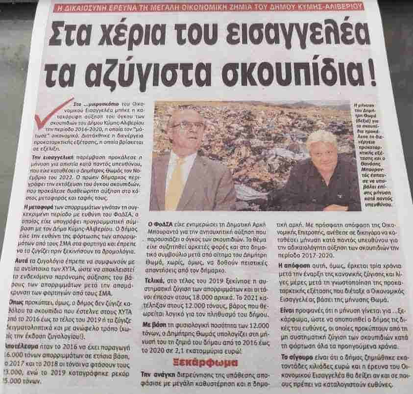 σημερινοί διοικούντες. Για το θέμα αυτό υπάρχει και σχετικό άρθρο στην Ευβοϊκή Γνώμη που κυκλοφόρησε αυτή την εβδομάδα.