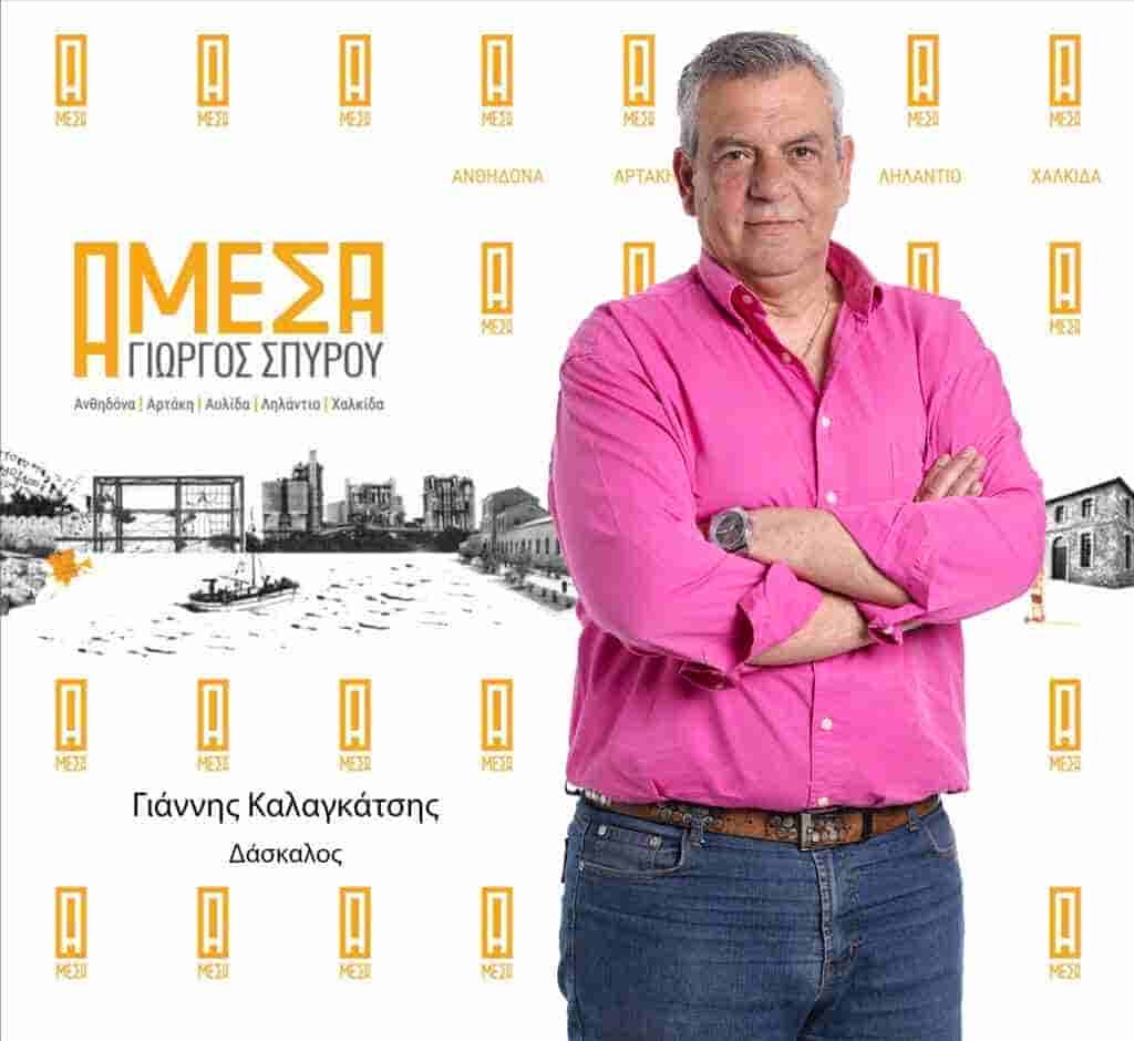 Ο Γιάννης Καλαγκάτσης γεννήθηκε στη Χαλκίδα από Χαλκιδέους γονείς και παππούδες. Είναι 60 ετών.