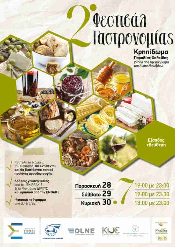 2ο Φεστιβάλ Γαστρονομίας της Π.Ε. Εύβοιας θα πραγματοποιηθεί από τις 28 έως και τις 30 Ιουλίου 2023 στον πεζόδρομο του κρηπιδώματος της παραλίας της Χαλκίδας.