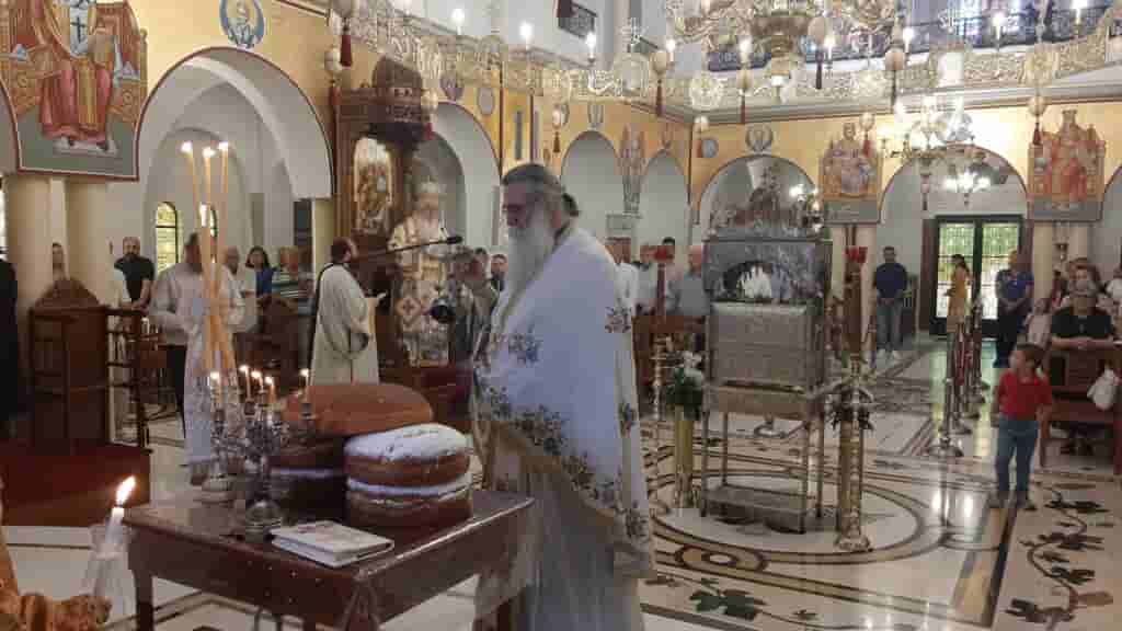 Τέλος ο Σεβασμιώτατος Μητροπολίτης κ. Γεώργιος ευχήθηκε με τις πατρικές και εόρτιες ευχές του προς όλους τους πιστούς που τίμησαν την εορτή καθώς επίσης συνεχάρει τον π.Αθανάσιο για την ευπρέπεια του ιερού ναού και για  την μέριμνα του στο ποιμαντικό έργο της ενορίας.