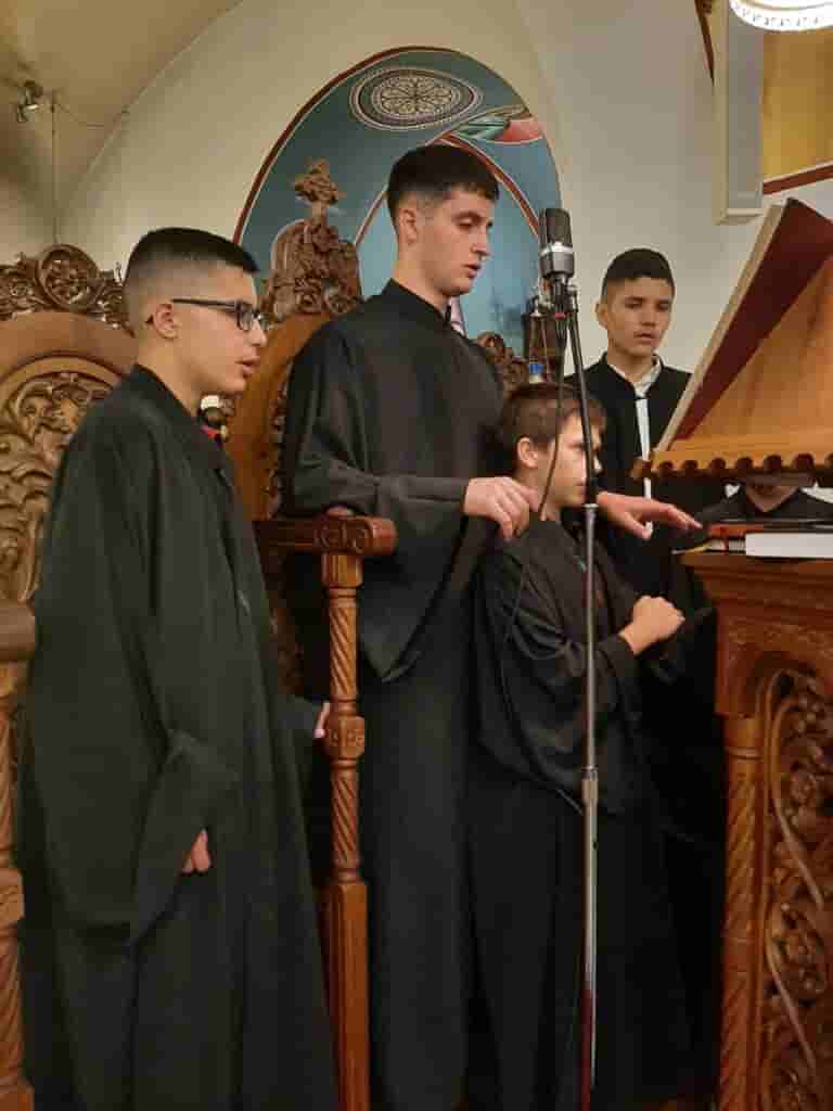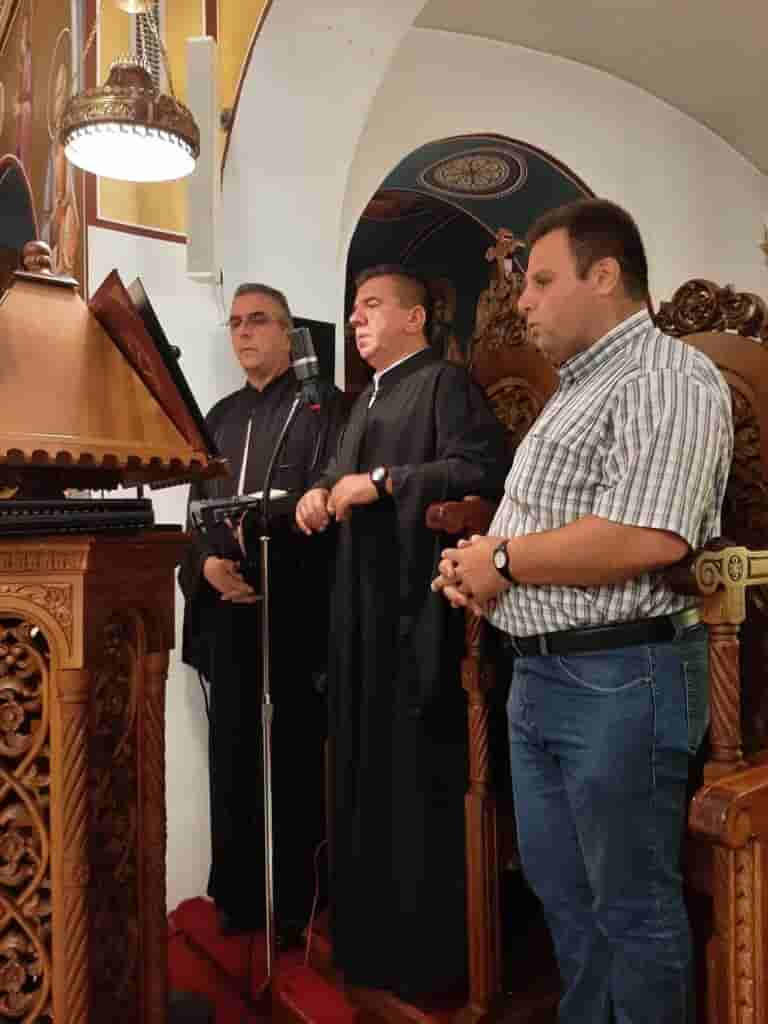 Επίσης του ύμνους απέδωσαν ο Πρωτοψάλτης του ιερού ναού κ. Γεώργιος Μαρίνης με τον Λαμπαδάριο του ιερού ναού κ. Νεκτάριο Γεραμάνη υιό του εφημερίου του ιερού ναού.