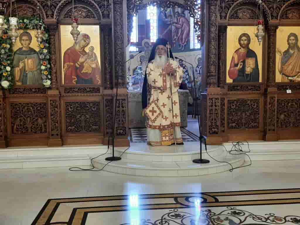 Τον θείο λόγο κήρυξε ο Σεβασμιώτατος Μητροπολίτης κ. Γεώργιος εστιάζοντας τον στην σημερινή ευαγγελική περικοπή της  του Εκαντοντάρχου  στην εορτή της Καταθέσεως της Τιμίας Ζώνης της Υπεραγίας Θεοτόκου και στο θαυμαστό γεγονός της τοπικής εκκλησίας εν όψει της επετείου της Μετακομιδής των Ιερών Λειψάνων του Οσίου Ιωάννου του Καλυβίτου.