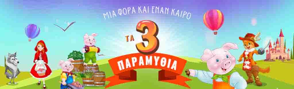 παράσταση με τα 3 ξεχωριστά κλασικά Παραμύθια : ο Παπουτσωμένος Γάτος ,τα 3 Γουρουνάκια και η