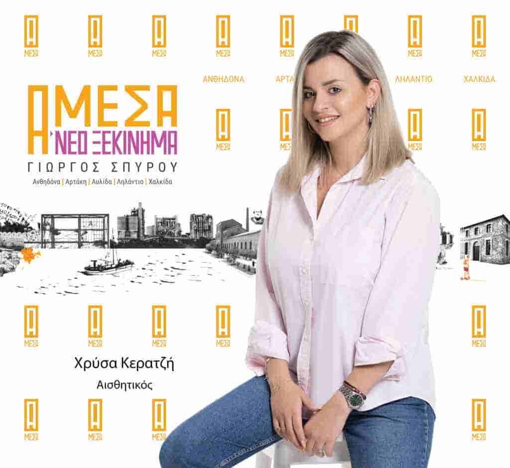 Η Κερατζή Χρυσούλα κατάγεται από το Φάρο Αυλίδας, όπου μένει και μόνιμα. Είναι παντρεμένη και μητέρα ενός παιδιού. Έχει ολοκληρώσει τις σπουδές της στο τμήμα Τεχνολογίας Τροφίμων στην Καλαμάτα. Έχει εργαστεί ως ιδιωτικός υπάλληλος και τα τελευταία χρόνια εργάζεται στο χώρο της αισθητικής. Ως νέος άνθρωπος, βλέποντας τα προβλήματα και τις ανάγκες του τόπου της, ήθελε να αποκτήσει ενεργό συμμετοχή στην επίλυση τους, γι’ αυτό και αποφάσισε να είναι μέρος του συνδυασμού «Άμεσα – Νέο Ξεκίνημα».