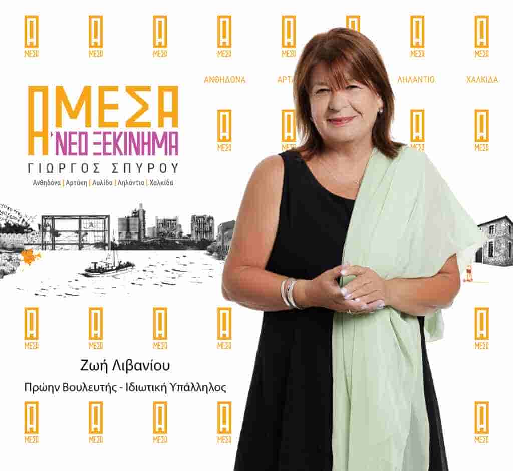 Πρώην Βουλευτής – Ιδιωτική Υπάλληλος. Η Ζωή Λιβανίου γεννήθηκε και κατοικεί στη Χαλκίδα (συνοικία Δοκού). Είναι παντρεμένη με τον εκπαιδευτικό Παρασκευά Γκίκα. Γνωστή στην πόλη της Χαλκίδας κυρίως από την ενασχόλησή της με τον πολιτισμό, τα κοινά, την δράση της στην αλληλεγγύη. Έχει διατελέσει Γ.Γ. στο σωματείο εστίασης και αναψυχής « Ο Ξένιος Ζευς» για 4 χρόνια, όταν διατηρούσε το μεζεδοπωλείο «Ζωή εν Χαλκίδι» στο κέντρο της πόλης και Μέλος του Δ.Σ της ΔΕΠΑΧ επί δημαρχίας Δημήτρη Αναγνωστάκη. Με πρωτοβουλία της ξεκίνησε το δημοτικό Θέατρο και έγιναν σημαντικές παραστάσεις, όπως επίσης και το δημοτικό καφενείο. Αυτές οι δράσεις διήρκεσαν όσο και η θητεία της δημοτικής αρχής Αναγνωστάκη. Ιδρυτικό μέλος του Θεάτρου Χαλκίδας (1981) και πρωτεργάτης του πολιτιστικού χώρου Αυλιδείας Αρτέμιδος από το 2012, όπου τα τελευταία 7 χρόνια πραγματοποιείται το bio mechanical festival. Σήμερα είναι πρόεδρός του. Ο πολιτισμός ως τρόπος ζωής είναι αυτό που την καθορίζει και παλεύει ώστε η πόλη να αποκτήσει πολιτιστική ταυτότητα, κάτι που θεωρεί αναγκαίο και εφικτό. Το 2015 εξελέγη βουλευτής Εύβοιας με το ψηφοδέλτιο του ΣΥΡΙΖΑ. Στην 4χρονη θητεία της ασχολήθηκε με θέματα πολιτισμού, εργασίας, παιδείας, περιβάλλοντος και κοινωνικά. Η ενασχόλησή της με τα κοινά είναι για την Ζωή Λιβανίου ανάγκη, για αυτό πιστεύει η συμμετοχή της στο ψηφοδέλτιο «ΑΜΕΣΑ – ΝΕΟ ΞΕΚΙΝΗΜΑ» με επικεφαλής τον Γιώργο Σπύρου και