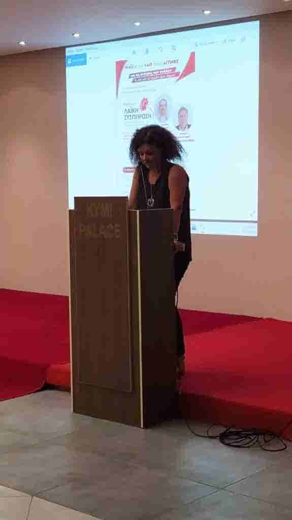 Κάλεσε τους παρεβρισκόμενους να δώσουν όλες τους τις δυνάμεις ώστε να φτάσει παντού το κάλεσμα ενίσχυσης Λαϊκής Συσπείρωσης για ισχυρή λαϊκή αντιπολίτευση στο δήμο, στα τοπικά συμβούλια και στην περιφέρεια το επόμενο χρονικό διάστημα.