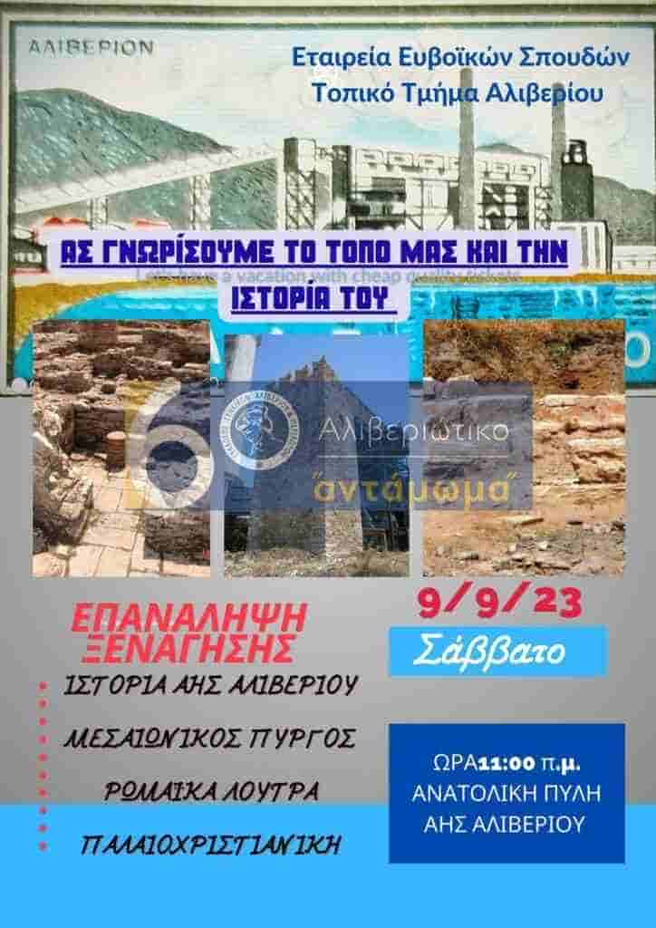 Με αφορμή το ΑΝΤΑΜΩΜΑ – το φεστιβάλ παραδοσιακών χορών που διοργανώνει κάθε χρόνο ο Σύλλογος Γυναικών Αλιβερίου- η πρόεδρος του Συλλόγου πρότεινε στον πρόεδρο του Τ.Τ. Αλιβερίου της Εταιρείας Ευβοϊκών Σπουδών να ξεναγήσει τα φιλοξενούμενα χορευτικά συγκροτήματα στους αρχαιολογικούς θησαυρούς της περιοχής μας στον ΑΗΣ ΑΛΙΒΕΡΙΟΥ.