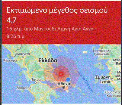 Πολύ δυνατός σεισμός και με μεγάλη διάρκεια, κούνησε ολόκληρο το νησί της Εύβοιας.