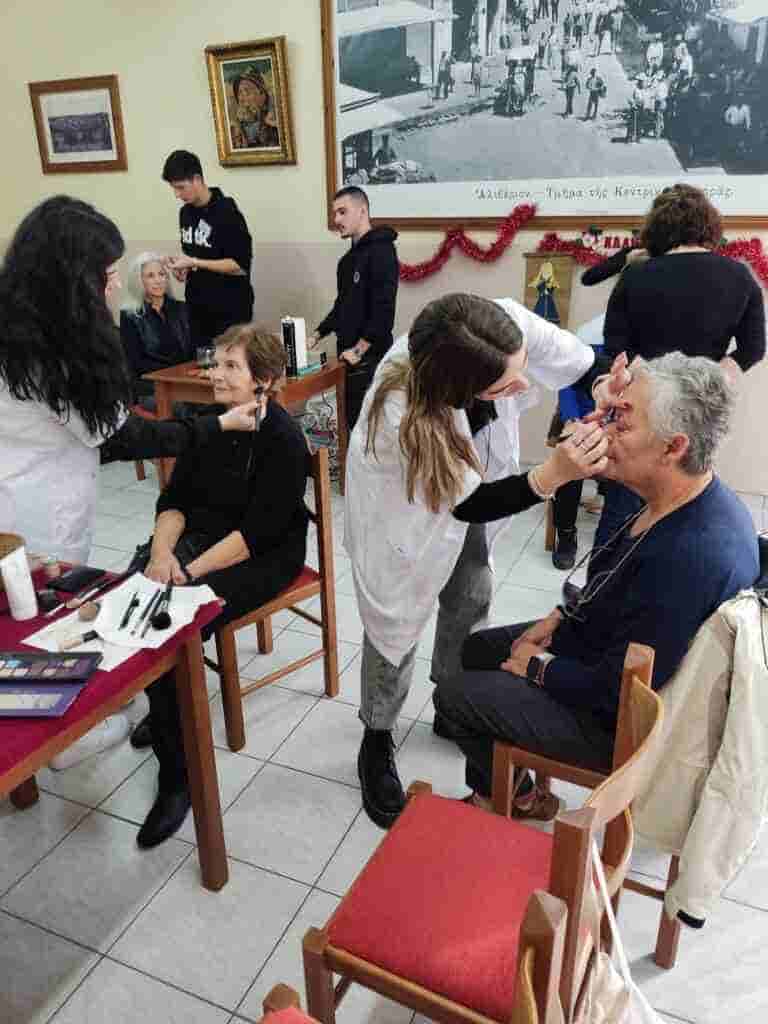 Μαθητές και μαθήτριες των ειδικοτήτων Κομμωτικής κι Αισθητικής του ΕΠΑΛ Αλιβερίου, εισέβαλλαν στο ΚΑΠΗ Αλιβερίου με όλα τους τα όπλα ομορφιάς, για να κλέψουν την ρουτίνα της καθημερινότητας και να αφήσουν πίσω τους μια άδεια ατμόσφαιρα από τις όποιες κουραστικές ή αρνητικές σκέψεις, αλλά πιο φωτεινή, γεμάτη από αστραφτερά χαμόγελα και μπόλικη ζεστασιά στις καρδιές όλων .