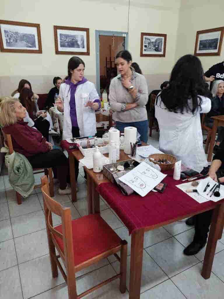 “Γιορτινή η σημερινή μέρα στην αίθουσα του ΚΑΠΗ Αλιβερίου!!!. Μία εκπαιδευτική δράση (χτένισμα και μακιγιάζ ) με αγάπη και αλληλεγγύη έγινε από τα τμήματα Γ΄ τάξης ειδικότητας Κομμωτικής και Αισθητικής.