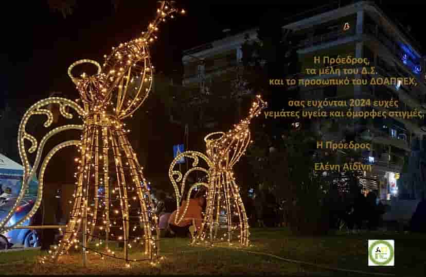 Η Πρόεδρος κα Ελένη Αϊδίνη, τα μέλη του Δ.Σ και το προσωπικό του ΔΟΑΠΠΕ Χαλκίδας στέλνουν θερμές ευχές με φόντο τον λαμπερό κι ονειρεμένο γιορτινό στολισμό της Χαλκίδας