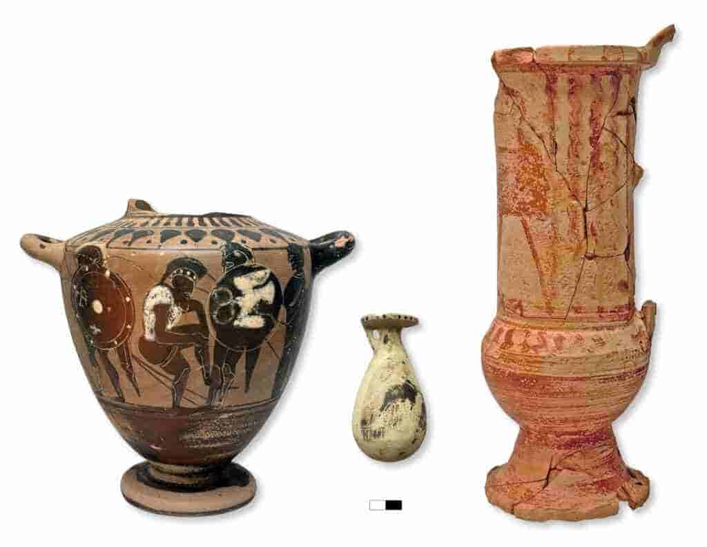 Η #ανασκαφή του αρχαϊκού ναού έφερε στο φως πλούσια αναθήματα: κορινθιακά αλάβαστρα, αττικά αγγεία, τελετουργικές πρόχους τοπικής παραγωγής, καθώς και κοσμήματα από πολύτιμα υλικά (χρυσό, ασήμι, κοράλλι, κεχριμπάρι), φυλαχτά από την Ανατολή, χάλκινα και σιδερένια εξαρτήματα οπλισμού.