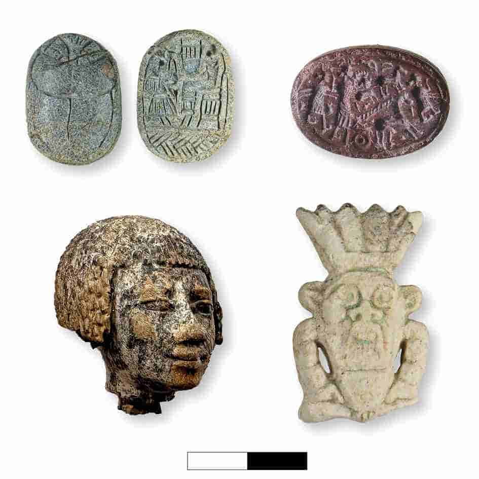 Oστέινη Αιγυπτιακή κεφαλή, 8ος-7ος αι. π.Χ. Ειδώλια από φαγεντιανή του θεού Μπες, 8ος-7ος αι. π.Χ. Λίθινοι σφραγιδόλιθοι, 8ος-7ος αι. π.Χ.