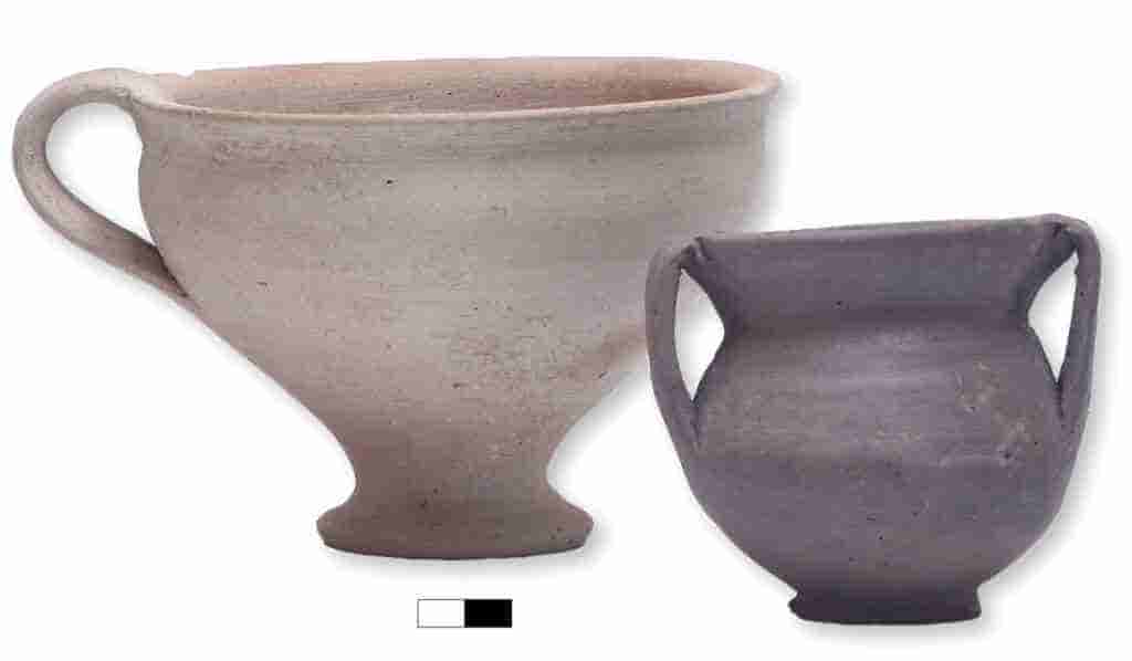 Μόνωτο κύπελλο και γκρίζος μινυακόςκρατηρίσκος από τάφο της αρχής της Ύστερης Εποχής του Χαλκού, 17ος-16ος αι. π.Χ.