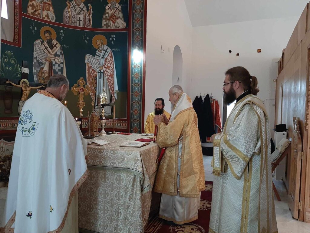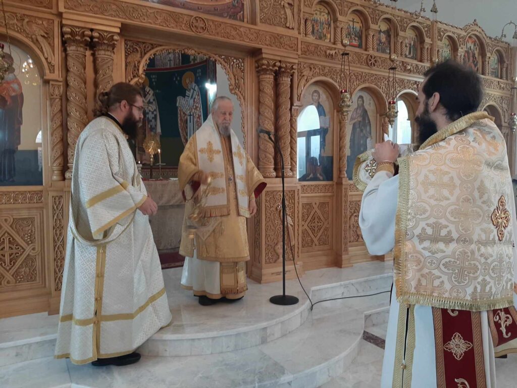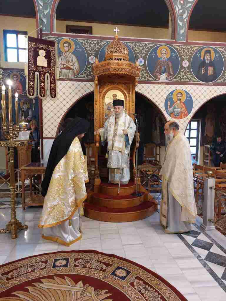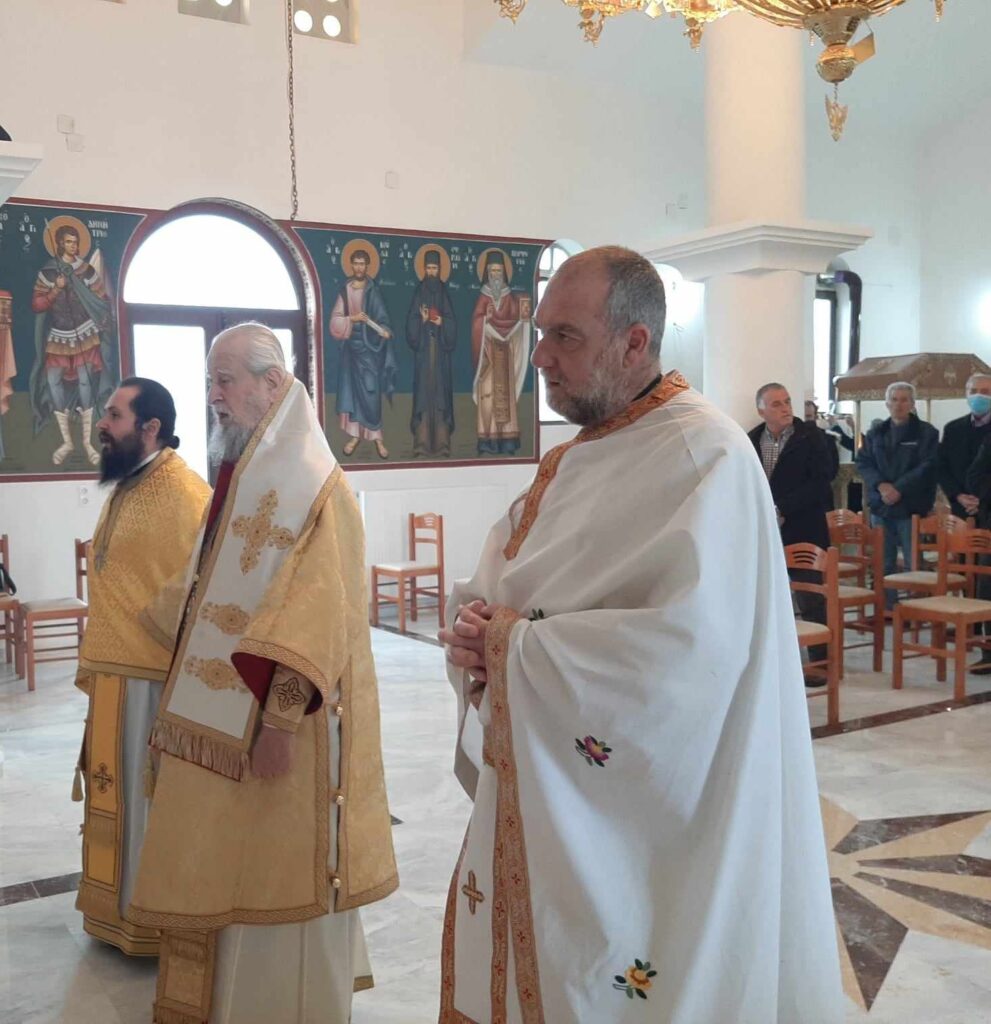 Τον Σεβασμιώτατο Μητροπολίτη Ειρηνουπόλεως κ. Νίκανδρο πλαισίωσαν ο Αρχιερατικός Επίτροπος Καρύστου Πανοσ Αρχιμ Γεράσιμος Παρίσης με τον Πρωτοπρεσβύτερο Αθανάσιο Νόβα εφημέριο του ιερού ναού.
