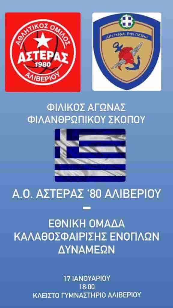 Ο Α.Ο ΑΣΤΕΡΑΣ θα αντιμετωπίσει την Εθνική Ομάδα Καλαθοσφαίρισης των Ενόπλων Δυνάμεων σε ένα μοναδικό, φιλικό αγώνα που έχει φιλανθρωπικό σκοπό.