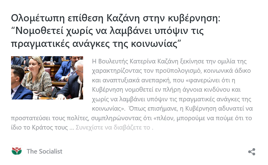 Είναι γεγονός πως η Κατερίνα Καζάνη με τις εύστοχες και ουσιαστικές κοινοβουλευτικές παρεμβάσεις της έχει δικαιώσει απόλυτα την επιλογή του Νίκου Ανδρουλάκη και κυρίως των πολιτών που με την ψήφο τους, της έδωσαν θέση μέσα στο Ελληνικό Κοινοβούλιο.