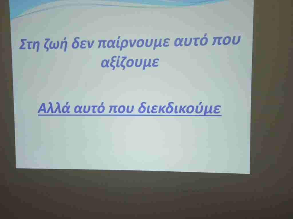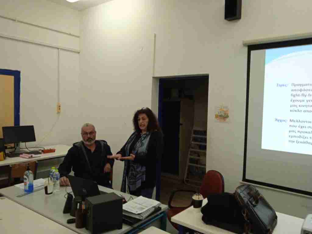 Η Σύμβουλος Σχολικής Ζωής και υπεύθυνη της Γ’ Λυκείου φιλόλογος κα Ηλία Ελένη είχε ως προσκεκλημένους τον κ. Κώστα Ρούμπο γιατρός φυσικοθεραπευτής, coach ψυχικής υγείας και γνωσιακός -συμπεριφοριστικός θεραπευτής και την κα. Καπενή Μαριάννα επίσης coach γνωσιακή -συμπεριφοριστική θεραπεύτρια, οι οποίοι με τις γνώσεις τους και την αμεσότητα τους ενημέρωσαν τους μαθητές και τις μαθήτριες της Γ’ Λυκείου για το επίμαχο για την ηλικία τους θέμα : Άγχος και Πανελλήνιες.