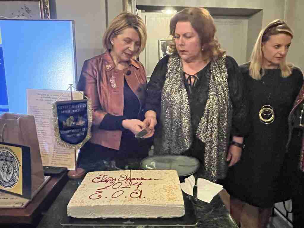 Άριστες οικοδέσποινες δίπλα στη Πρόεδρο, στάθηκαν τα νέα μέλη του Ομίλου Χαλκίδας κες. Κατερίνα Σκιά , διαιτολόγος και παιδιατρικός διατροφολόγος, Ιωάννα Ακριώτη, δικηγόρος και υπεύθυνη δημοσίων σχέσεων του σοροπτιμιστικού ομίλου , Βασιλική Βούργα, ιατρός αλλεργιολόγος , Μαρία Παπακωνσταντίνου, όπως και τα μέλη του Δ.Σ, η αντιπρόεδρος κα Γιολάντα Δημητρίου, συμβολαιογράφος , η ταμίας του ομίλου κα Νίκη Φιλιππίδου, σ. καθηγήτρια οικιακής οικονομίας , η κα. Χάιντι Καραγιώργη , πολιτικός μηχανικός , η κα Ελένη Ρόζα Νικολάου , σ. εκπαιδευτικός-πολιτικός επιστήμονας, η κα Μαρία Σκούρα , σ. υποθηκοφύλακας και η κα. Καίτη Βοσκού , σ. καθηγήτρια ΤΕΙ , πολιτικός επιστήμων , Α΄ Αντιπρόεδρος ΣΟΧ, η οποία προσέφερε τη βασιλόπιτα.