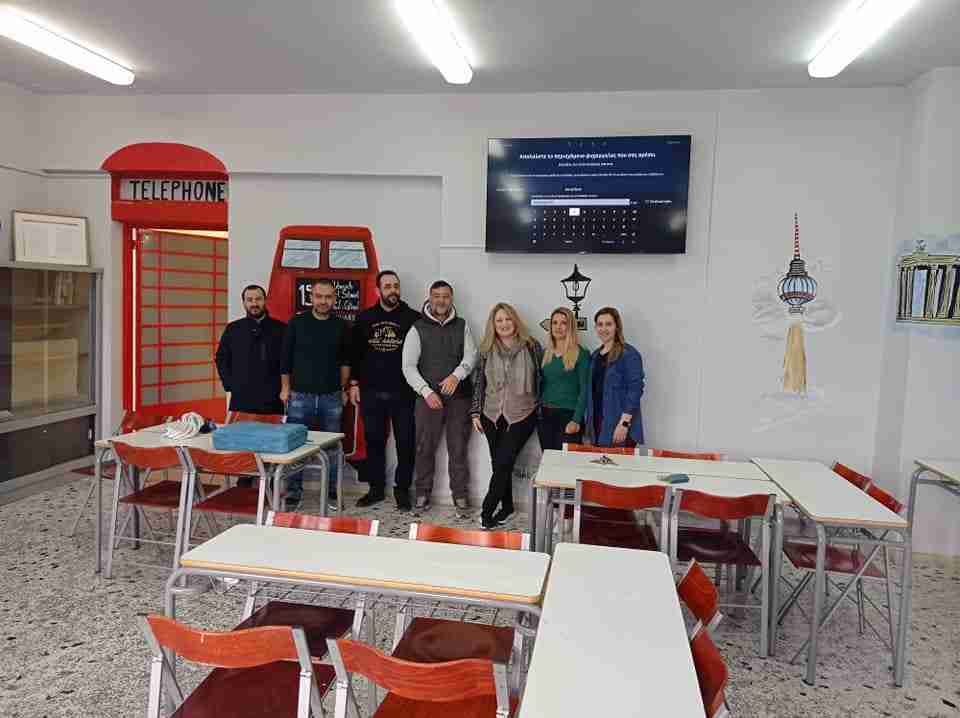Την τελική πινελιά έβαλαν ο εντεταλμένος Περιφερειακός Σύμβουλος για την Κοινωνική Μέριμνα κ. Χαϊνάς Ευάγγελος και ο κ. Σαββόπουλος Βαλάντης από το Σύλλογο Νέων, προσφέροντας σημαντική οικονομική ενίσχυση για την αγορά SMART TV., η οποία από εδώ και στο εξής θα συμπληρώνει τον στόχο της ανακαινισμένης αίθουσας με προβολές εκπαιδευτικού χαρακτήρα που θα συμβάλλουν σημαντικά σε ένα τμήμα της διδασκαλίας.
