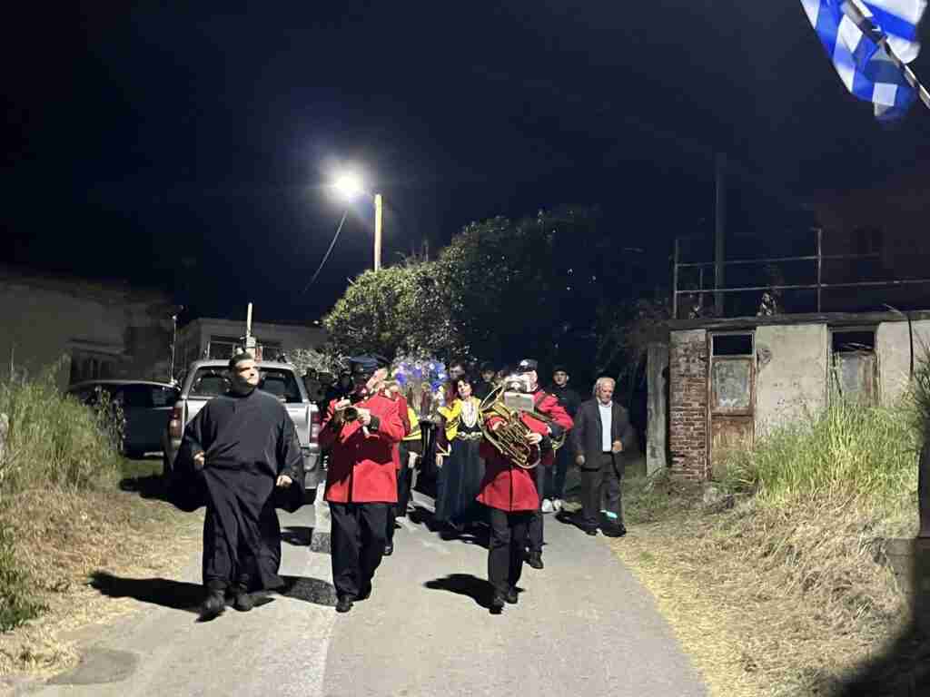 Με ιδιαίτερη κατάνυξη πραγματοποιήθηκε Ιερά λιτανεία της Τιμίας Κάρας, περιμετρικά του ναού στα δρομάκια του χωριού, με τη συνοδεία φιλαρμονικού αγήματος Αθηνών και την Ομάδα Εθελοντών Διασωστών, SAR 312.