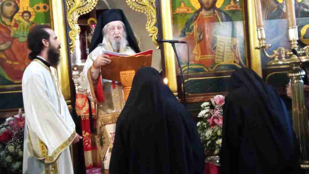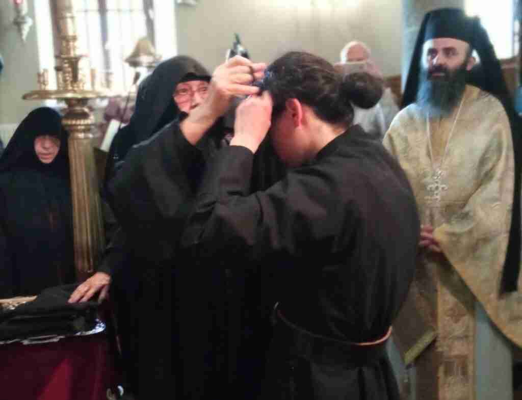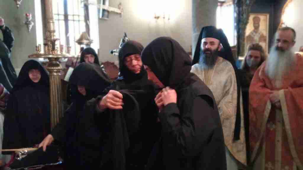 Μετά το πέρας της Θείας Λειτουργίας ο Σεβασμιώτατος κ. Σεραφείμ παρουσία της Ηγουμένης της Ιεράς Μονής Συγκλητικής Μοναχής την συμμετοχή μοναστικών αδελφοτήτων εκ της ιεράς μητροπόλεως και πολλών πιστών τέλεσε την ακολουθία της μοναχικής κουράς της δοκίμου μοναχής Σοφίας Βασιλειάδου εκ Κοζάνης καταγομένης η οποία και ονομάσθηκε Σεραφειμία Μοναχή.