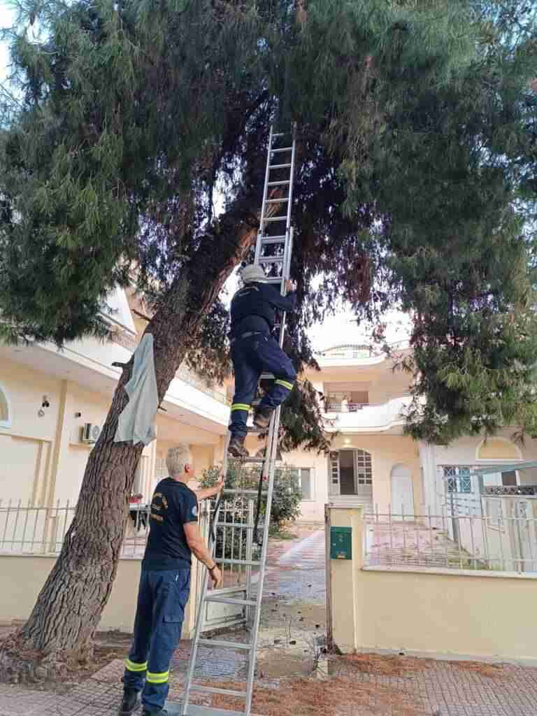 Ευχόμαστε την γρήγορη ανάρρωση της γατούλας από τον φόβο και την ταλαιπωρία της διήμερης παραμονής της πάνω στο δέντρο!