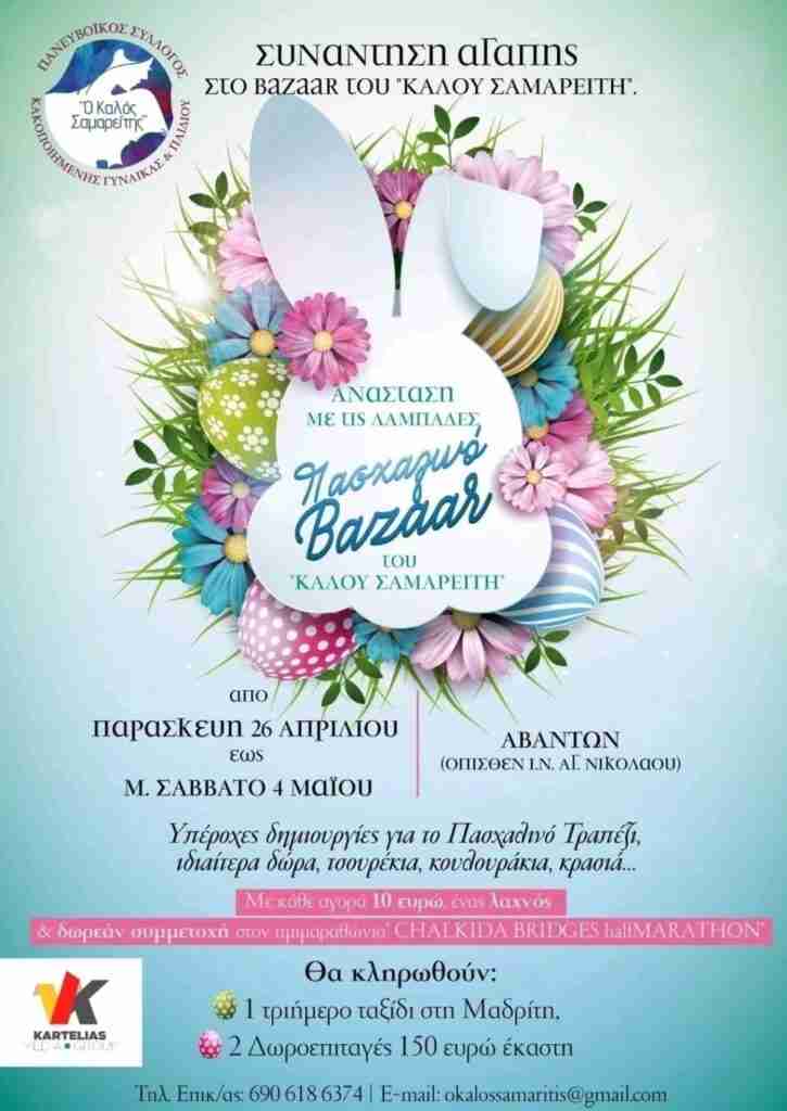 Συνάντηση Αγάπης και γι αυτό το ΠΑΣΧΑ, στο BAZAAR του “ΚΑΛΟΥ ΣΑΜΑΡΕΙΤΗ”, από 26 Απριλίου εως και 4 Μαΐου στην Αβάντων (όπισθεν Ι.Ν.Αγ.Νικολάου).