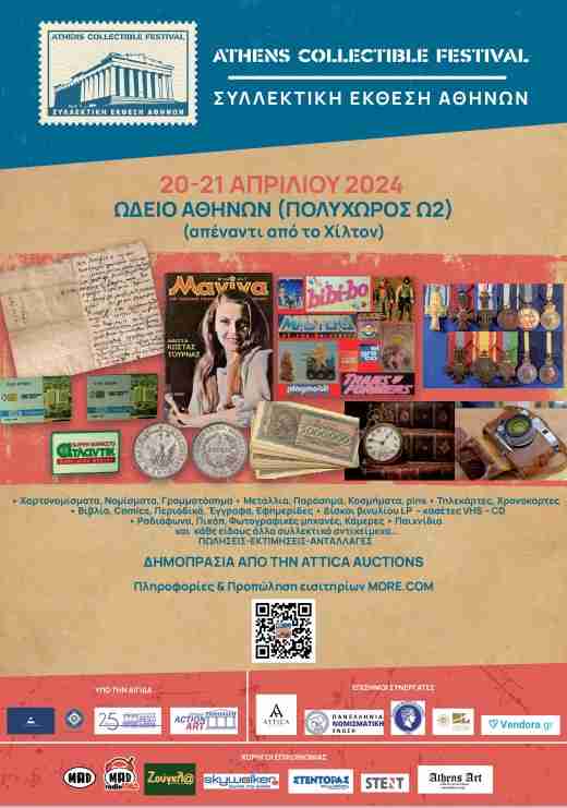 Το “ATHENS COLLECTIBLE FESTIVAL” η Συλλεκτική Έκθεση Αθηνών, έρχεται στις 20-21 Απριλίου στο ΩΔΕΙΟ ΑΘΗΝΩΝ (Πολυχώρος Ω2) για όλους τους λάτρεις συλλεκτισμού, αλλά και για όλους όσοι θέλουν να γνωρίσουν την κοινότητα η οποία διαφυλάττει την ιστορία, ανταλλάσσοντας αντικείμενα, εμπειρίες και ιδέες.