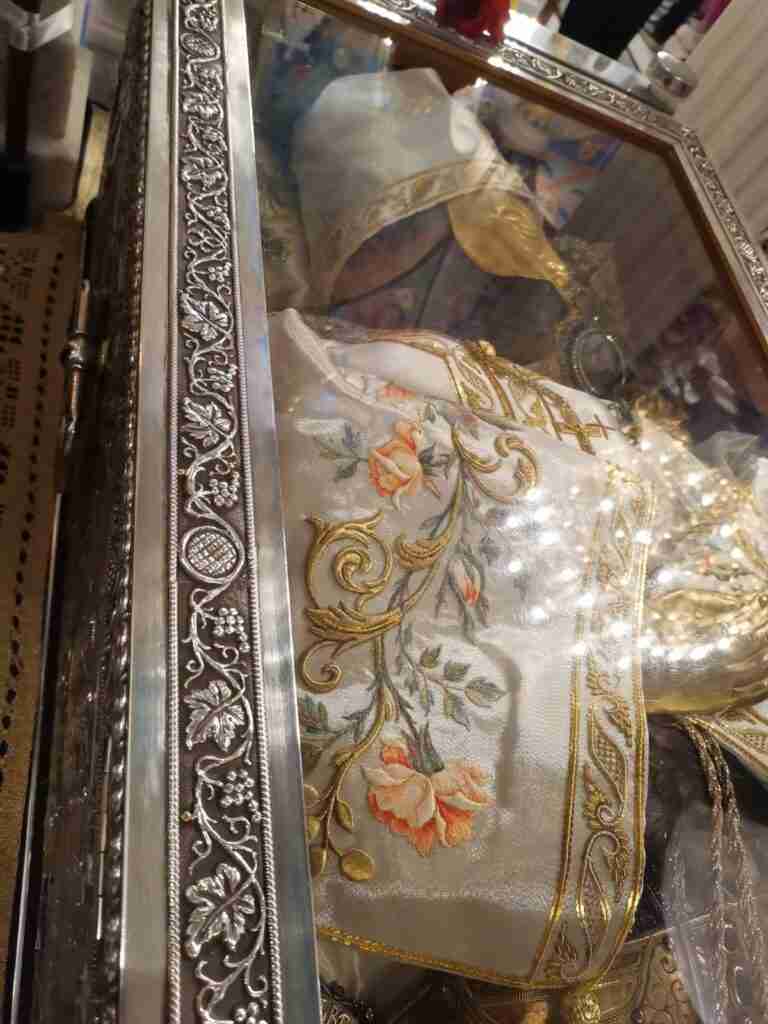 Τα Άμφια που αφαιρέθηκαν στη συνέχεια θα γίνουν μικρά κομματάκια που θα μοιραστούν στους πιστούς με την Ευλογία και τη Χάρη του Αγίου, Προστάτη της Εύβοιας και των Χριστιανών.