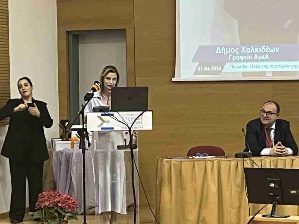 Με μεγάλη επιτυχία ολοκληρώθηκε το πρώτο μέρος της δεύτερης ημερίδας του Δήμου Χαλκιδέων, συγκεκριμένα του γραφείου ΑμεΑ. Με θέμα “Χαλκίδα πόλη της συμπερίληψης, πόλη του ΌΛΟΙ μαζί, όλοι ΈΝΑ τη Δευτέρα 1η Απριλίου στην αίθουσα του αμφιθεάτρου Περιφερειακής Ενότητας Ευβοίας. την ημερίδα συντόνισε η Αντιδήμαρχος Υγείας, ΑμεΑ και Εθελοντισμού κα Βασιλική Κόντου η οποία είχε και την εισήγηση του θέματος.