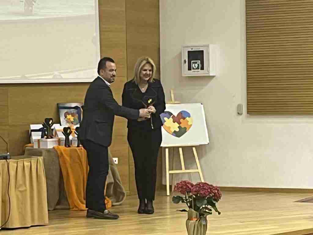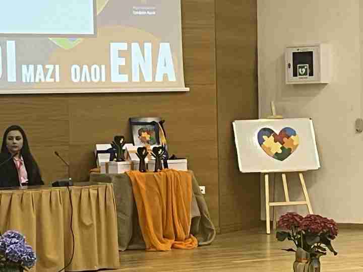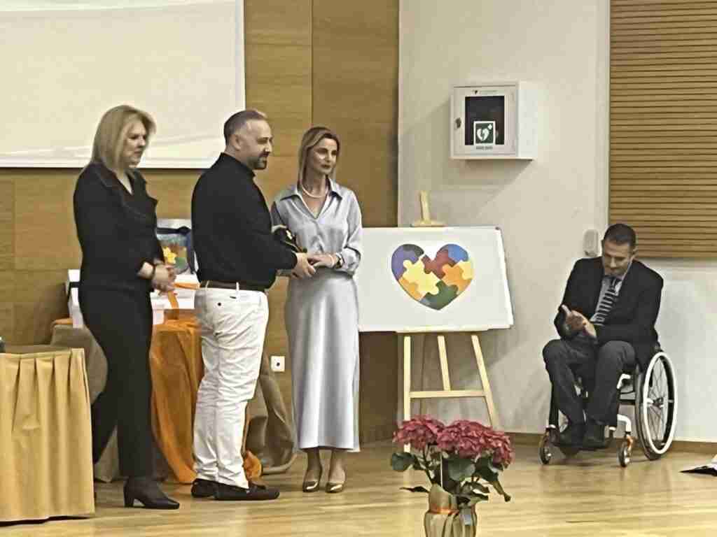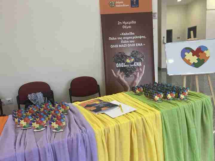 Η Αντιδήμαρχος κα Κόντου προσέφερε ένα δώρο στην Δήμαρχο κα Βάκα ως ένδειξη ευχαριστίας για την συνεργασία και το αμέριστο ενδιαφέρον της, για την ανάπτυξη δράσεων σχετικά με ότι αφορά τα ΑμεΑ. Το δώρο ήταν έναν πίνακας ζωγραφικής με την πολύχρωμη καρδιά παζλ που σηματοδοτεί τις ενέργειες του Δήμου Χαλκιδέων με στόχο όλα τα κομμάτια της κοινωνίας, να συνυπάρχουν και να στηρίζουν τα ΑμεΑ, “ΟΛΟΙ μαζί όλοι ΕΝΑ”.