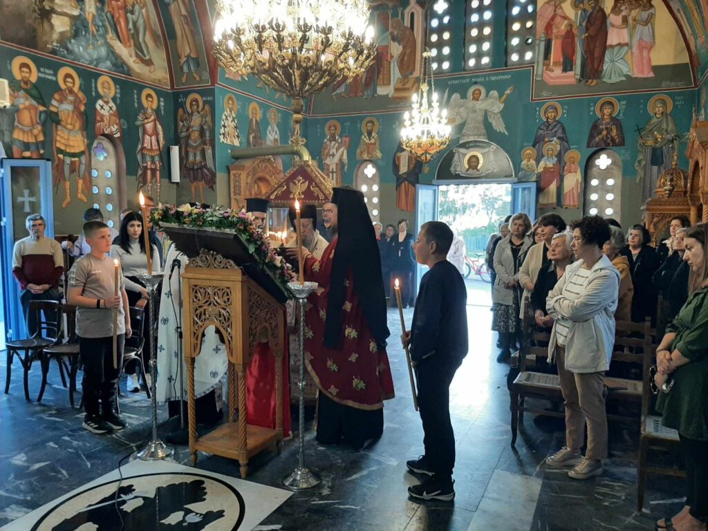 Την Παρασκευή 5 Απριλίου το εσπέρας,  ο Σεβασμιώτατος Μητροπολίτης Καρυστίας και Σκύρου κ. Σεραφείμ στα πλαίσια των ποιμαντικών του επισκέψεων εν όψει της Αγίας και Μεγάλης Τεσσαρακοστής μετέβη στον ιερό ναό της Κοιμήσεως της Θεοτόκου στην ενορία της παραλίας Αλμυροποτάμου Στυρέων επαρχίας Καρύστου  όπου χοροστάτησε στην ακολουθία της Γ’ Στάσεως των Χαιρετισμών της Υπεραγίας Θεοτόκου συμπαραστατούμενος από τον Αρχιερατικό Επίτροπο Καρύστου Πανοσ Αρχιμ Γεράσιμο Παρίση  τον Πρεσβύτερο Γρηγόριο Κούλη εφημέριο του ιερού ναού και τον Διάκονο Στυλιανό Πεταχτή.