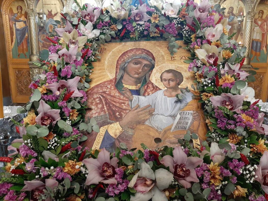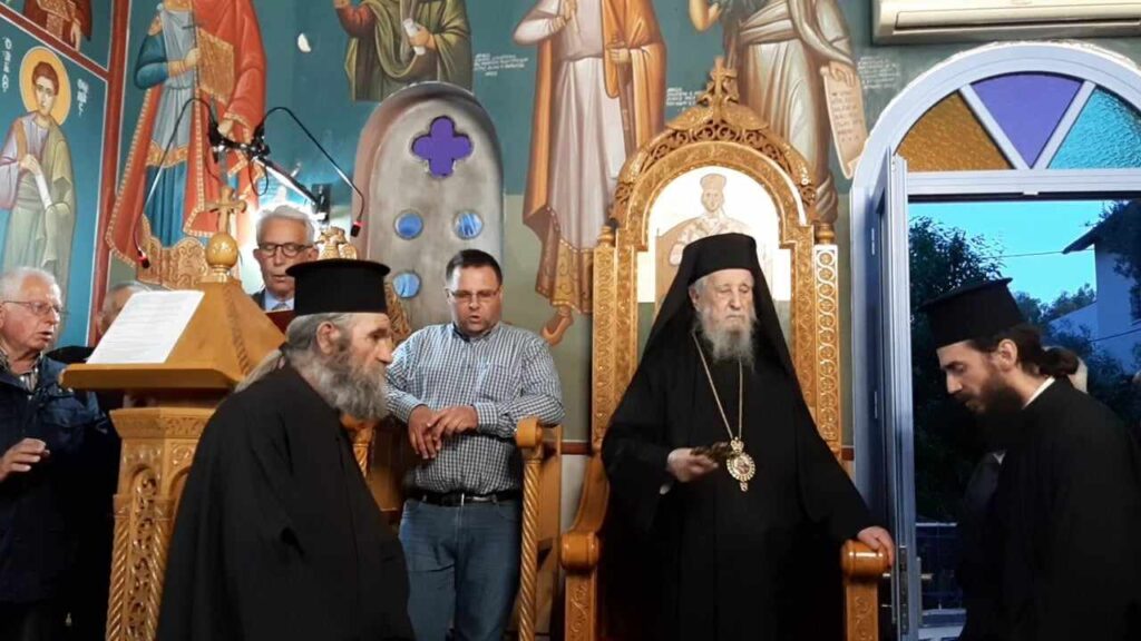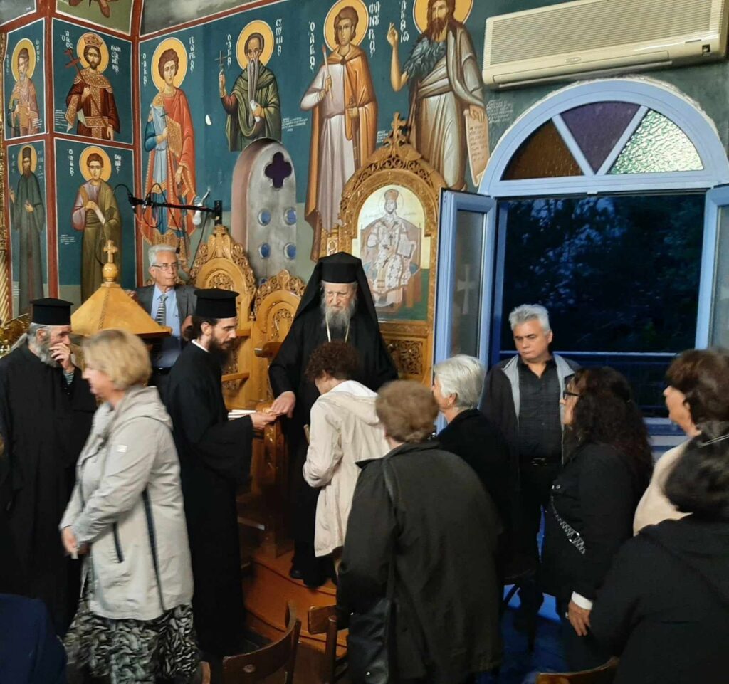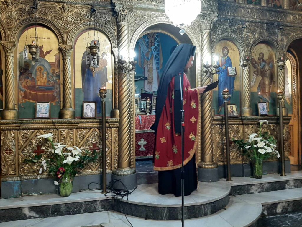 Πρό της απολύσεως ο Σεβασμιώτατος Μητροπολίτης Καρυστίας και Σκύρου κ. Σεραφείμ αναφέρθηκε μέσα από τον θεόπνευστο λόγο του στον θεομητορικό  στίχο των χαιρετισμών της Υπεραγίας Θεοτόκου Χαίρε δι ής ηνοίχθη παράδεισος.