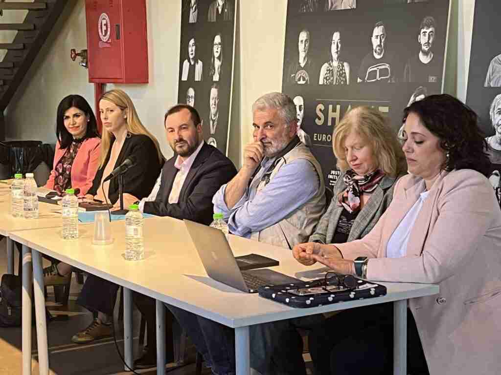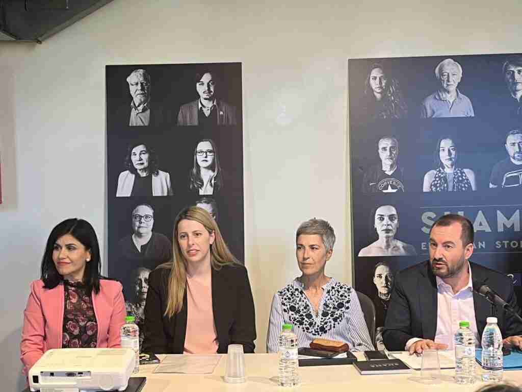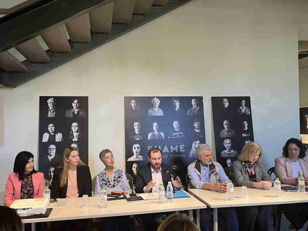 Η κα. Τίνια Απέργη, Κλινική Ψυχολόγος εκπρόσωπος της Έκθεσης «Ντροπή – Ευρωπαϊκές Ιστορίες». Έκανε μια σύντομη εισαγωγή στο κρίσιμο θέμα που μαστίζει τα τελευταία κυρίως χρόνια και στάθηκε στα καίρια χαρακτηριστικά του. Παρουσίασε το θέμα της έκθεσης που αποτυπώνει, για πρώτη φορά το φαινόμενο της παιδικής κακοποίησης, σε ασπρόμαυρους πίνακες προσώπων με την ιστορία της παιδικής κακοποίησης που βίωσε ο καθένας. Με αφετηρία την Αθήνα η έκθεση, επισκέφθηκε ως πρώτο σταθμό την πόλη της Χαλκίδας, ενώ θα ταξιδέψει σε πολλά κομβικά σημεία της Ελλάδας.