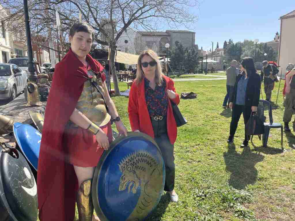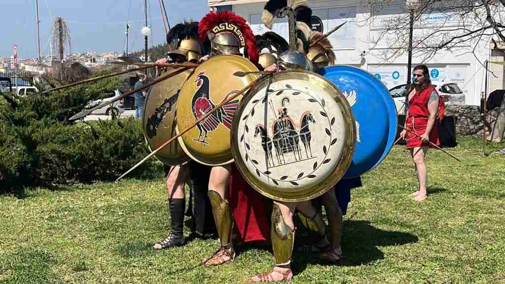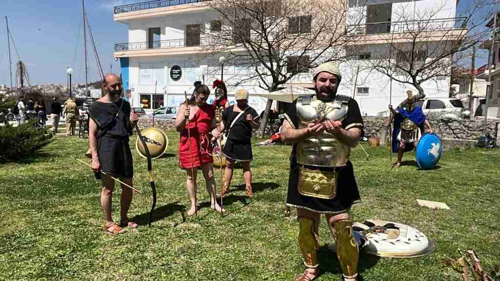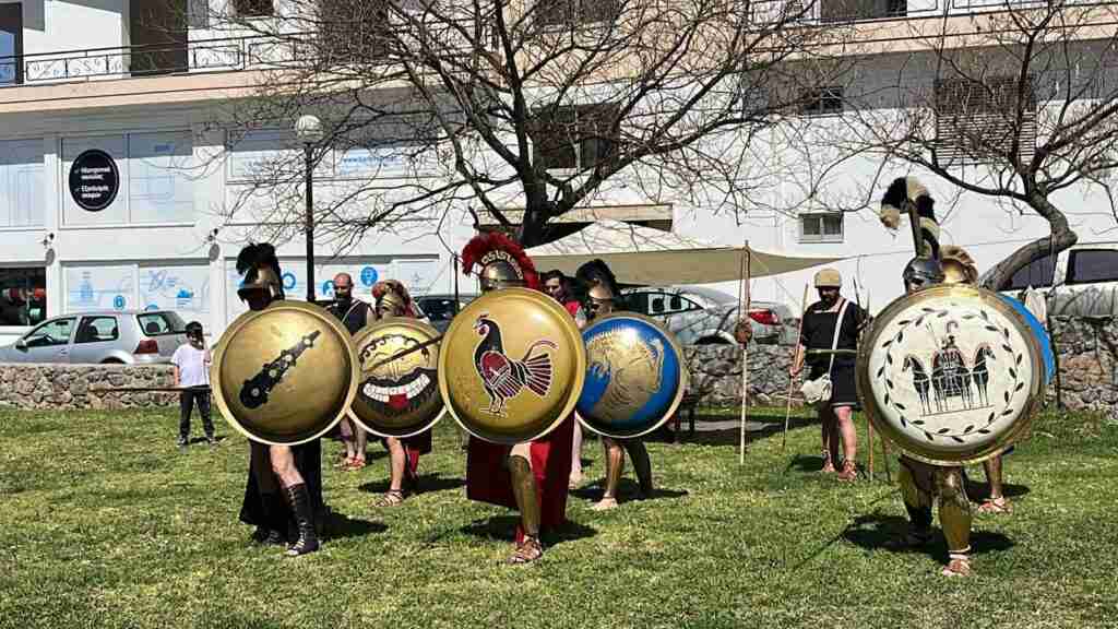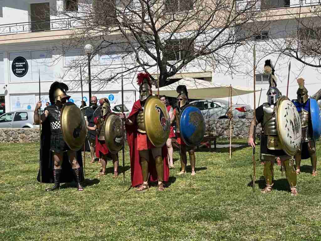 Ανάμεσά τους και το Εκπαιδευτικόν Αρχαιοπρεπές Οπλιτικόν Άγημα ΛΕΩΝΙΔΑΣ το οποίο έκανε σύντομη παρουσίαση οπλιτών στο πεδίο της μάχης και στη συνέχεια ο γνωστός Χαλκιδέος Δικηγόρος κ. Μιχάλης Χάνος, μέλος του Αγήματος περιέγραψε με πληθώρα πληροφοριών τις ενδυμασίες, τις δυσκολίες και μερικές από τεχνικές των οπλιτών της αρχαιότητας.