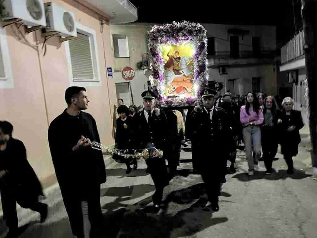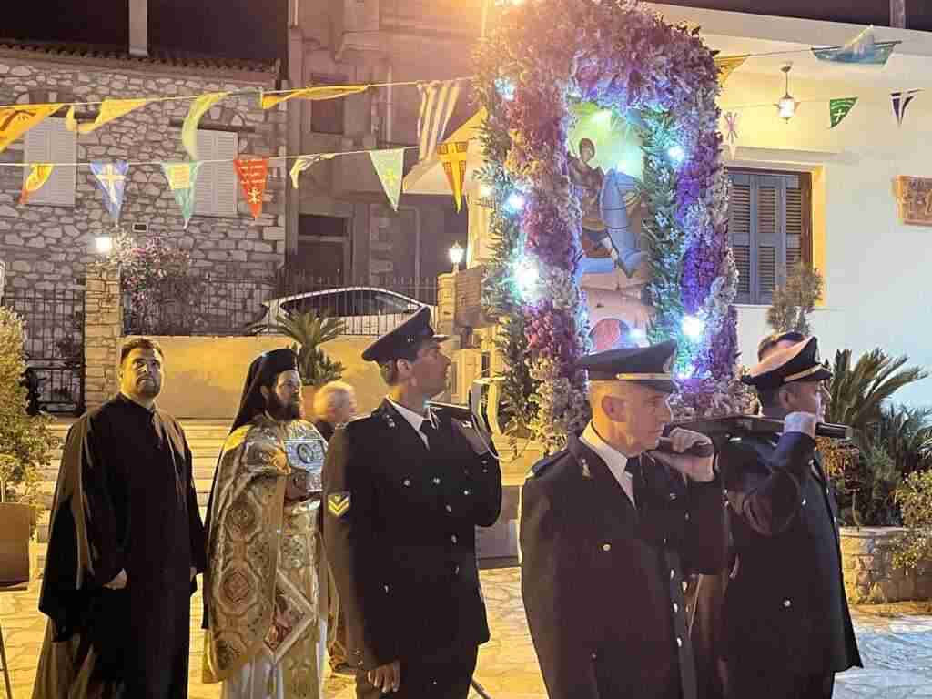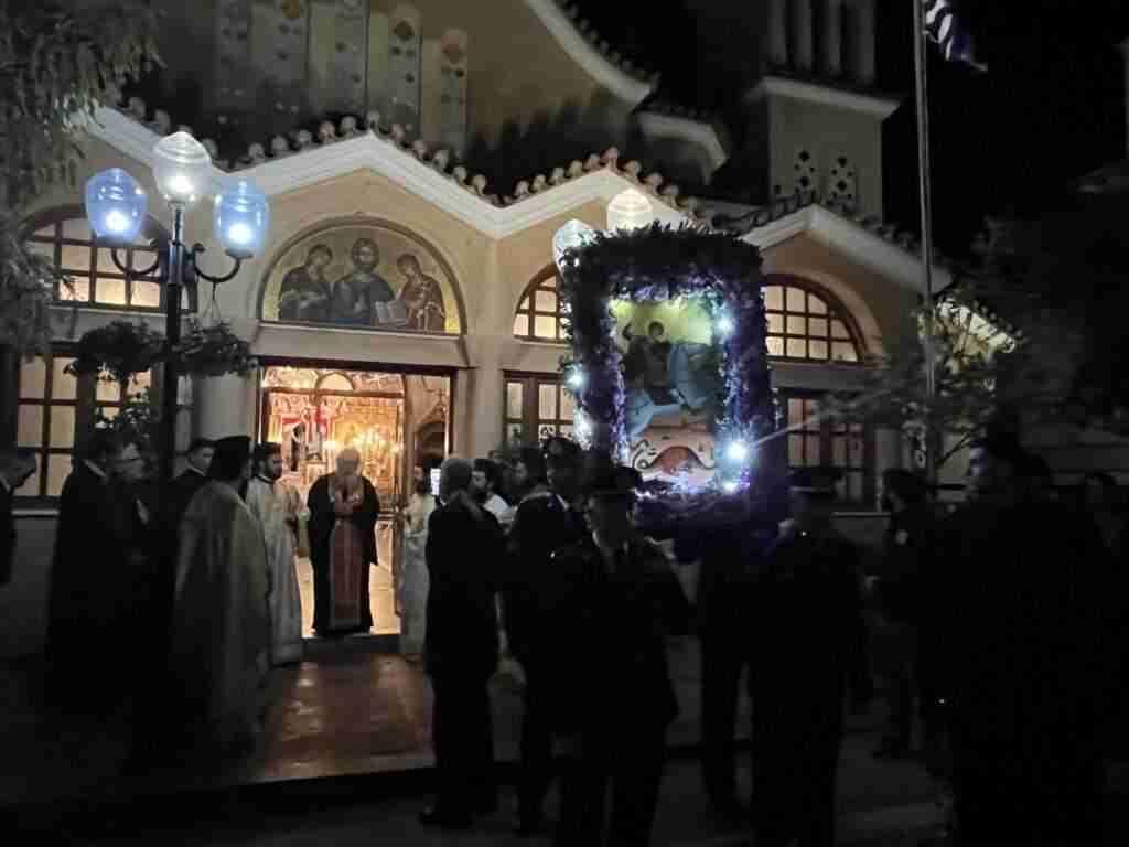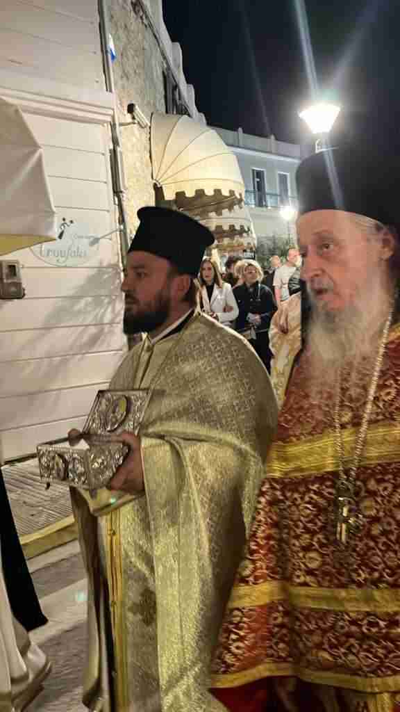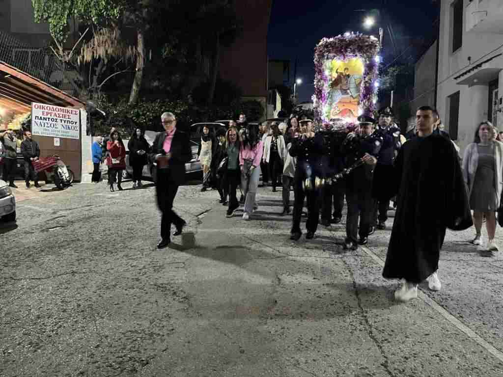 Ακολούθησε η λιτανεία της Εικόνας και τμήματος των Ιερών Λειψάνων του Αγίου Γεωργίου στους δρόμους της πόλης, συνοδευόμενη από πλήθος πιστών καθώς επίσης από παραδοσιακά ντυμένους άνδρες και γυναίκες του Πνευματικού Κέντρου Αλιβερίου ” Ο Άγιος Γεώργιος” καθώς και ο Πρόεδρος της Κοινότητας Αλιβερίου κ. Προκόπιος Αλέξης.