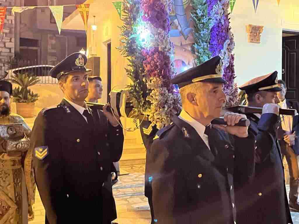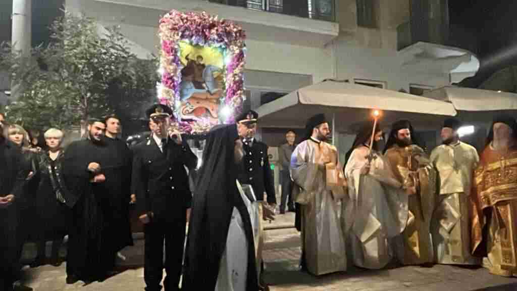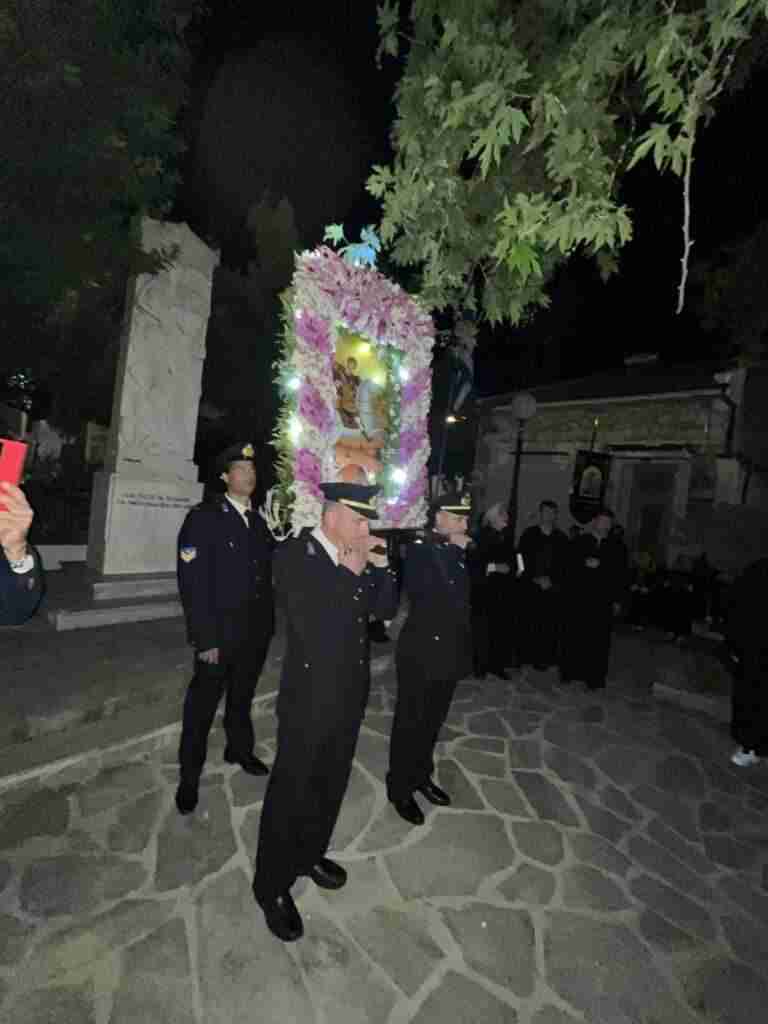 Την Ιερή Εικόνα μετέφεραν όπως είθισται, άνδρες του Πυροσβεστικού Σώματος Ασφαλείας και συγκεκριμένα του Πυροσβεστικού Κλιμακίου Αλιβερίου.