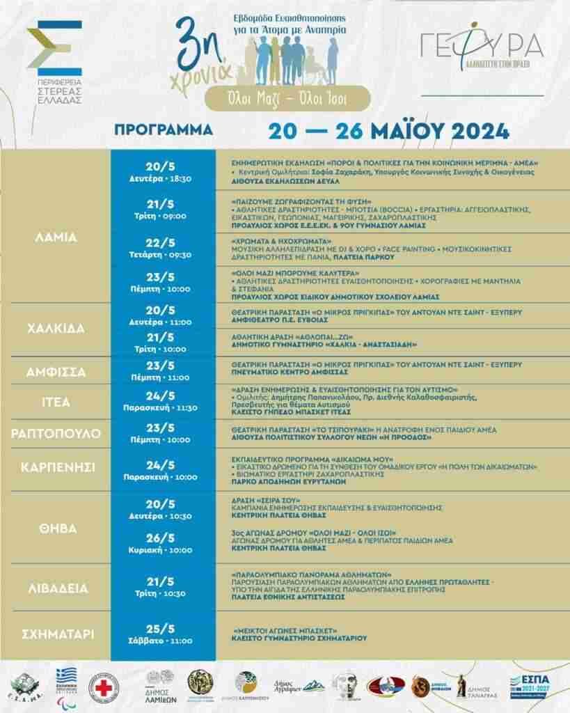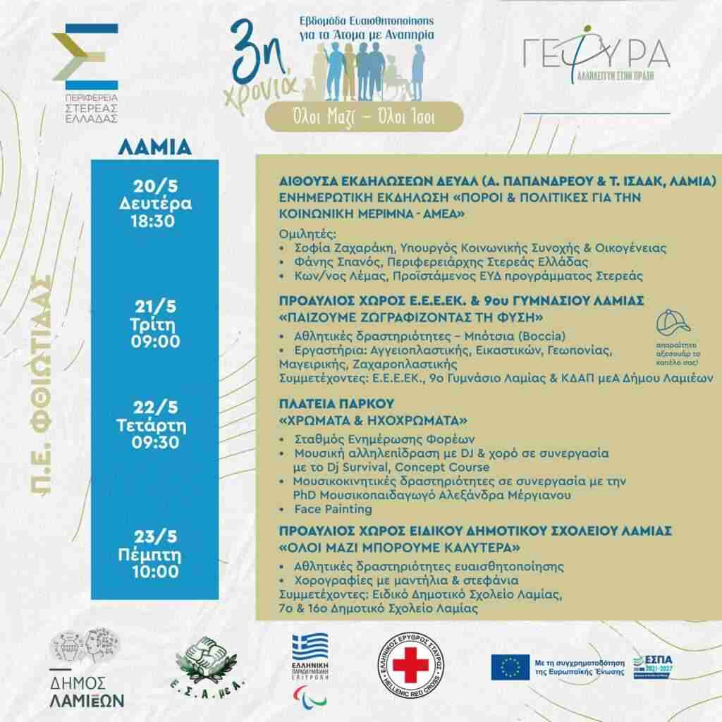 Λαμία), το πρόγραμμα της «3ης Εβδομάδας Ευαισθητοποίησης για Άτομα με Αναπηρία», με