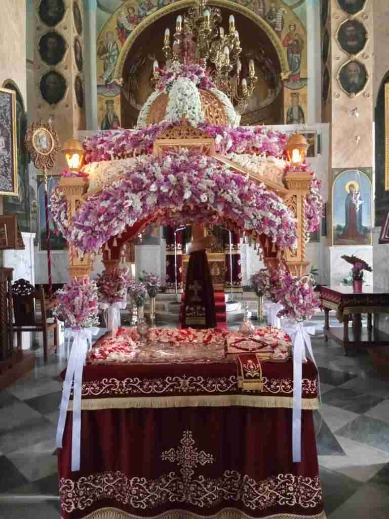 Ο στολισμός του Επιταφίου με ανοιξιάτικα λουλούδια, παραδοσιακά ξεκινάει από το βράδυ της Mεγάλης Πέμπτης και ολοκληρώνεται τα ξημερώματα της μεγάλης Παρασκευής. Οι καμπάνες χτυπούν πένθιμα καθόλη τη διάρκεια της ημέρας.