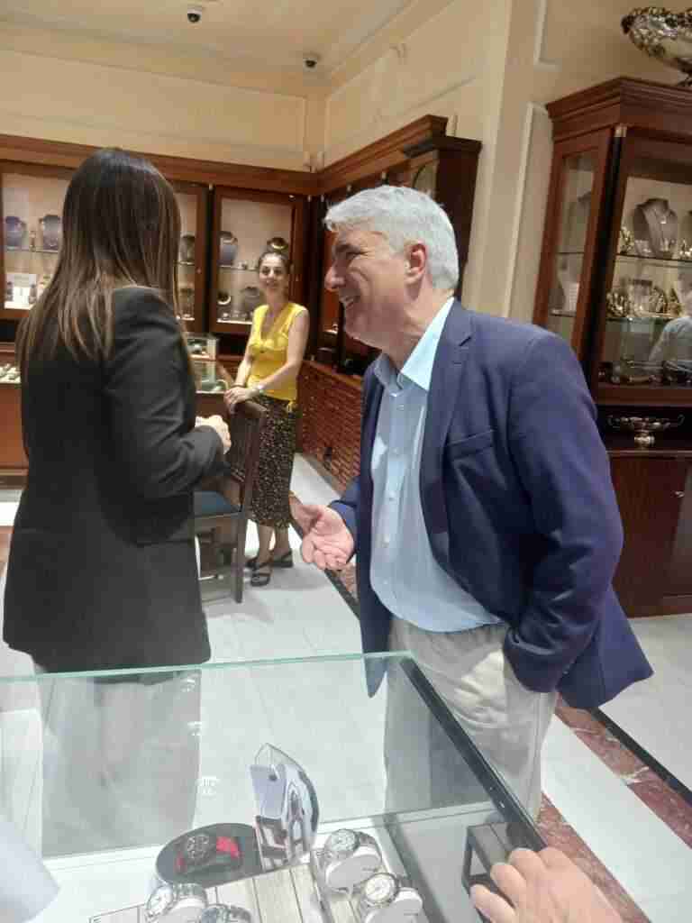 Συναντήθηκε στο παλαιό δημαρχείο με την Δήμαρχο κα. Έλενα Βάκα, τους βουλευτές κ. Σίμο Κεδίκογλου, κ. Αθανάσιο Ζεμπίλη και κα. Κωνσταντίνα Καραμπατσόλη. Στη συνέχεια πραγματοποίησαν σύσκεψη στην Περιφέρεια με τον Aντιπεριφερειάρχη κ. Γιώργο Κελαϊδίτη. Τέλος, περιηγήθηκαν στο εμπορικό κέντρο της πόλης της Χαλκίδας.