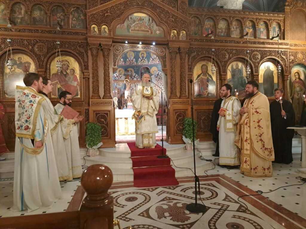 Αμέσως μετά, στον Μητροπολιτικό Ιερό Ναό Αγ. Δημητρίου Χαλκίδος, λόγω των αναστηλωτικών και ανακαινιστικών έργων που πραγματοποιούνται στον παλαιοχριστιανικό Ι. Ναό Αγ. Παρασκευής πολιούχου χαλκίδος, έλαβε χώρα η από ετών προεόρτια ιερά αγρυπνία και η ενθρόνιση της θαυματουργού εικόνας της Αγίας Παρασκευής, κατά την οποία προέστη ο Σεβασμιώτατος Ποιμενάρχης μας κ. Χρυσόστομος, με συλλειτουργούς τους Κληρικούς της Χαλκίδος και των περιχώρων.